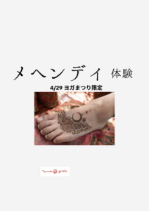 持ち物:着替え、ヨガマット、汗拭きタオル、水分補給用のお飲物