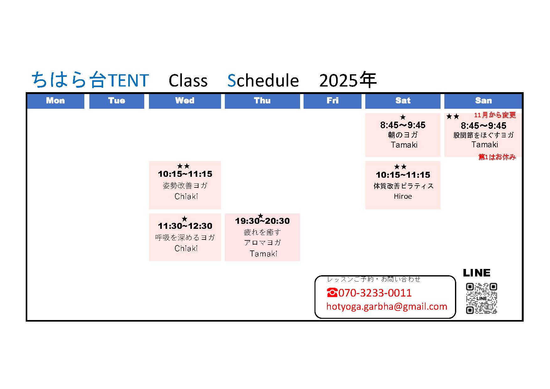 | 10:15~11:15 姿勢改善ヨガ Chiaki ![]() | 日常生活で崩れがちな姿勢を整え、美しい姿勢を保つコツをお伝えします。 やさしいポーズで身体の可動域を広げて、巡りを良くします。 深い呼吸もたくさんおこなうので、視界もクリアに、頭もスッキリします。 ヨガが初めての人はもちろん、ヨガ経験のある方でも基本を学べるクラスです。 |