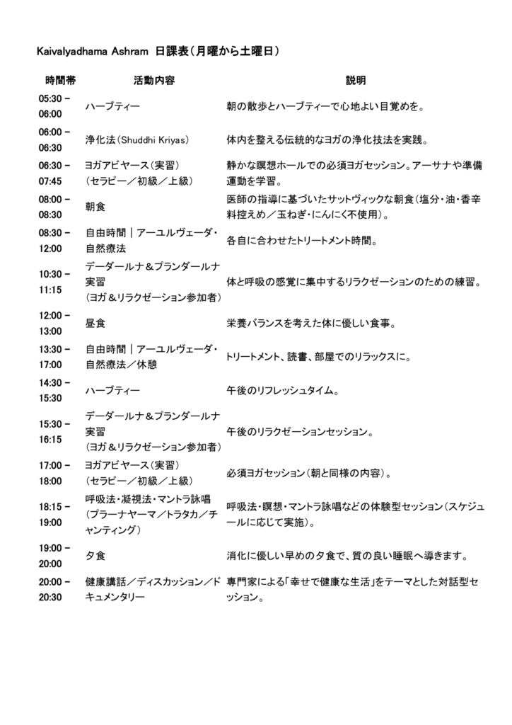 ここでは、ヨガの実践・図書館・アーユルヴェーダ・自然療法(ナチュロパシー)など、