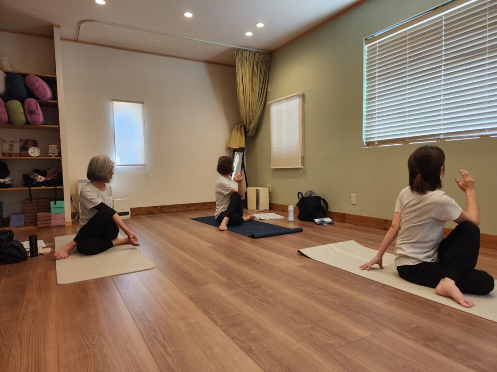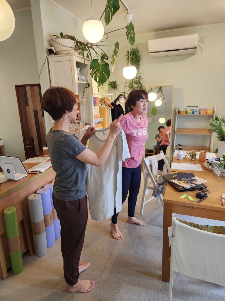 💖先日は、オートミール色を3人のお客様が購入してくださり、その場で着用してクラスを受けてくださいました。
