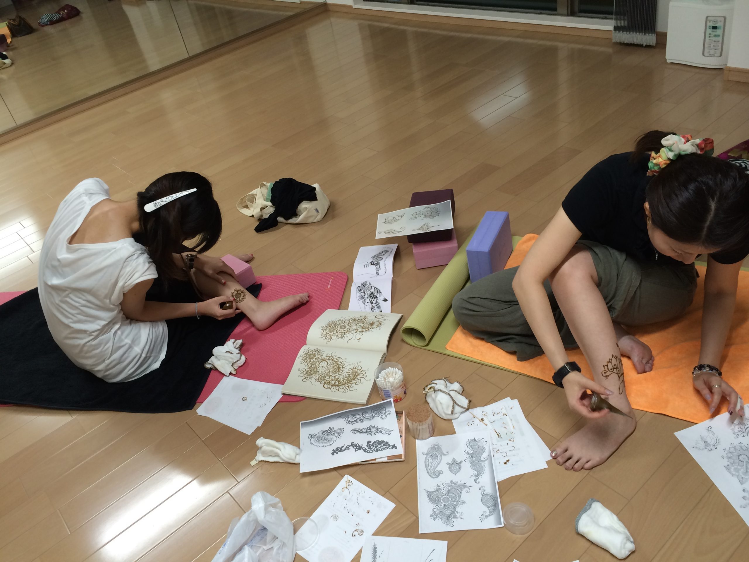 3人以上ご参加の場合、メヘンディアーティストの根本愛さんが同席してご指導いたします。